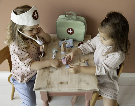 Little Dutch rotaļu koka garāža ar auto, helikopteru un aksesuāriem