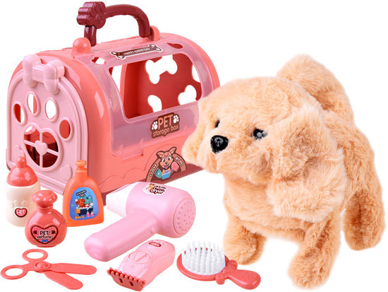 Ideāla rotaļlieta bērniem, kuri mīl dzīvniekus un sapņo par savu mājdzīvnieku. Komplektā iekļauti visi nepieciešamie piederumi, lai mazais saimnieks varētu rūpēties par savu četrkājaino draugu – mazgāt, ķemmēt, kopt un doties pastaigās.