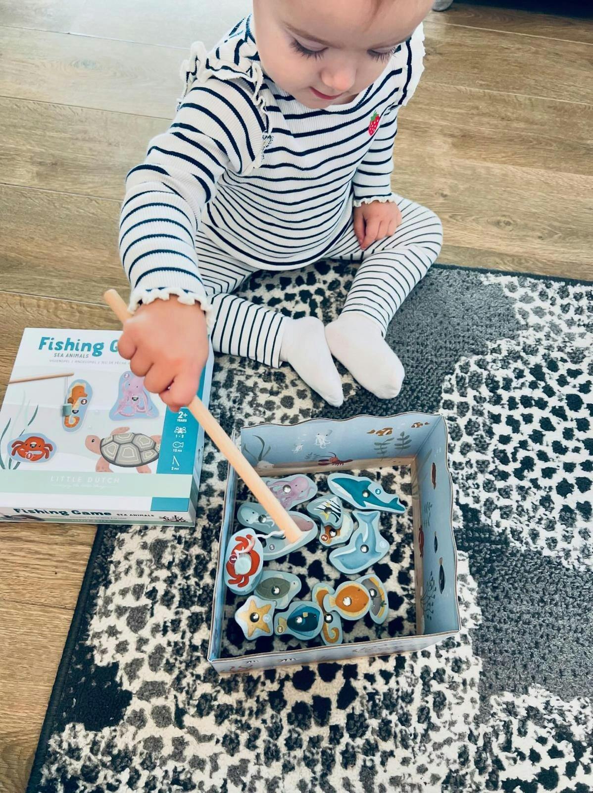 Mēģiniet noķert visus jūras dzīvniekus, izmantojot šo jautro Little Dutch makšķerēšanas spēli. Šī klasiskā makšķerēšanas spēle stimulē bērnu smalko motoriku un koncentrēšanos. Turklāt grūtības pakāpi var pielāgot spēlētāju vecumam un spējām. Tas nodrošinās rotaļu prieku gan mazākiem, gan vecākiem bērniem. Zemūdens dzīvnieki ir izgatavoti no koka, un akvārijs ir izgatavots no kartona.